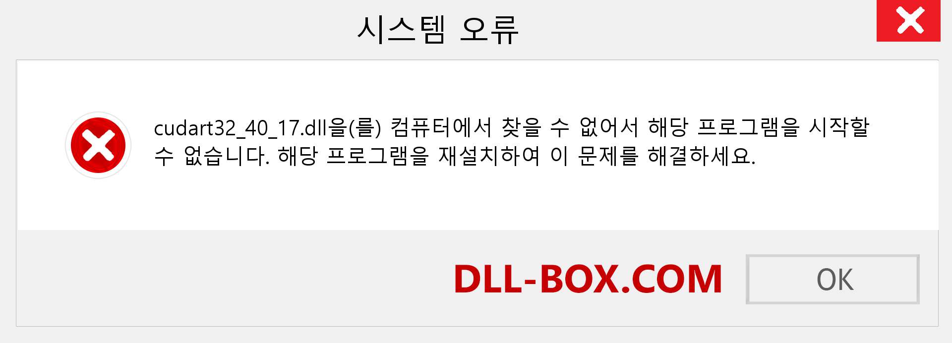 2. 시작하는 동안 문제가 발생했습니다. cudart32_40_17.dll 지정된 모듈을 찾을 수 없습니다.